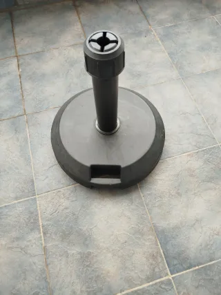 Base resistente para sombrilla, ideal para patios o jardines. - Fabricada en plástico y hormigón. - Color negro.