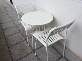 2 sillas, un sofá y una mesa. Muy buena condición. Apenas usado. Las manchas mojadas que se ven en las fotos son de la lluvia. Fotos 4 y 5: medidas de las sillas Fotos 6-8: medidas de la mesa Última foto: medida del sofá