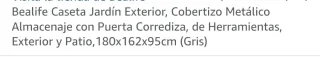 Caseta de exterior ya montada, lista para su uso. Ideal para almacenar herramientas o bicicletas o guadarnés para caballos . Tiene dentro un colgador para 4 cabezadas . Está usada no se mojan las cosas de dentro con la lluvia. La estructura se tiene que llevar montada , no se puede desmontar porque lleva muchos tornillos y son 4 horas de montaje. - Estructura de metal resistente. - Diseño de panel vertical. Puerta para poner un candado con bisagra.