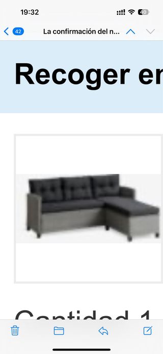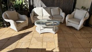 Conjunto de mobiliario de exterior con sofá y mesita. - Sofá de tres plazas. - Sillón individual. - Mesita auxiliar. Recogida en Fuengirola. No se hacen transporte