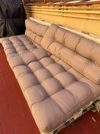 Conjunto de cojines en tono gris para sofá de palets, comprados en Lidl hace unos meses. El precio es de los 4 cojines. Regalo los palets. URGENTE