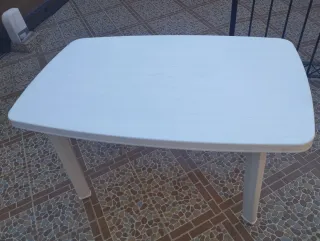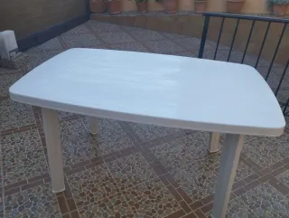 Mesa de patio blanca, ideal para exteriores. - Diseño moderno y funcional. - Patas resistentes para mayor estabilidad. - Superficie fácil de limpiar. Tengo dos. Medidas 135*85 cms