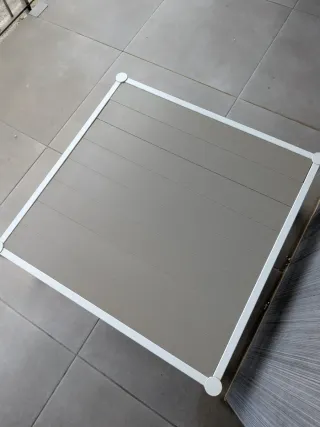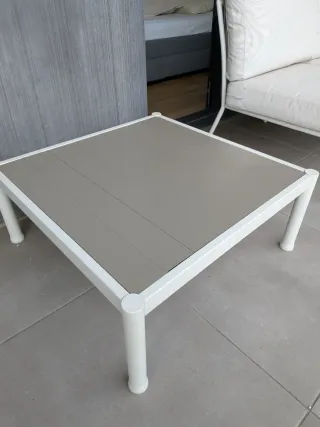 Mesa de centro cuadrada, ideal para espacios exteriores. Su diseño combina durabilidad (aluminio) y estilo. - Estructura de metal resistente. - Tablero fácil limpieza. - Patas estables para mayor seguridad.