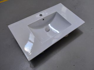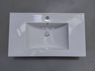 VENDO Lavabo de porcelana para baño, en color blanco, diseño limpio y elegante, con forma rectangular. Ideal para colocar sobre un mueble de baño con cajoneras. Diseño igual al de modelos típicos de venta en Leroy Merlin, BricoCentro etc. Está en perfecto estado. Medidas totales exteriores: 0.81m x 0,45m. Medidas de lavado de manos: 0.45m x 0.28m. Estado según las imágenes. - Medidas compactas, ideal para baños pequeños. - Superficie lisa y brillante.