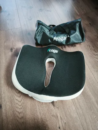 Cojín ergonómico para el coxis, diseñado para ofrecer comodidad. Incluye una funda lavable. - Fabricado con espuma de memoria. - Diseño con abertura central. - Funda exterior de tejido transpirable. - Bolsa
