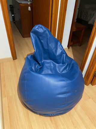 Cómodo sillón tipo puff de piel sintética. Tenía un pequeño rasguño que fue reparado con un parche por dentro (foto 2). Por lo demás está como nuevo. - Material exterior de piel sintética. - Color azul intenso. #asiento #sillón #puff #puf