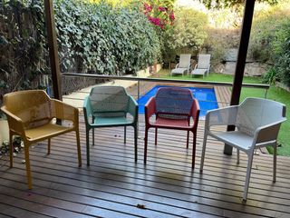 Conjunto de cuatro sillas de terraza. - Diseño moderno y perforado. - Ideales para exteriores. - Apilables - Precio nuevas 100Euros por silla.