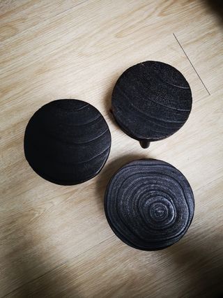 Tres pequeñas banquetas de madera para apoyar plantas, tiestos, jarrones tanto para interior como exterior. Buena idea para no tener las plantas directamente en el suelo y realzarlas. Se venden las 3 juntas a 21 euros y, a 8 euros cada una por separado.