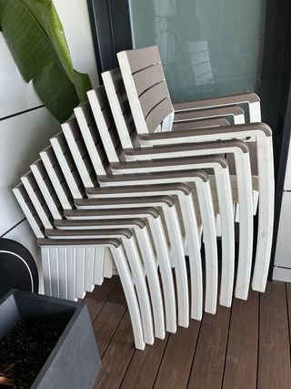 Conjunto de sillas de exterior apilables. Son perfectas para terrazas o jardines. - Diseño moderno y funcional. - Apilables para ahorrar espacio. - Resistentes a la intemperie.