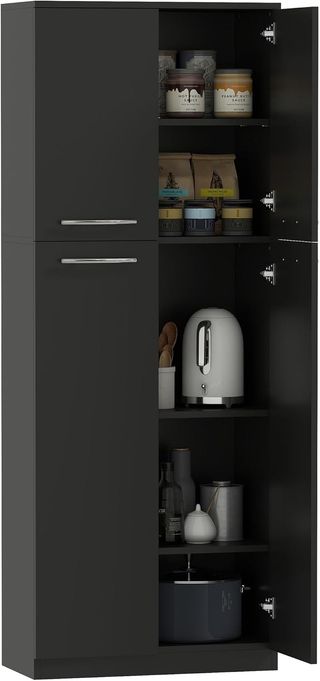 Credenza de Cocina, Mueble Despensa Con 2 Armarios, Mueble de Cocina Con Estantes Regulables en MDF, para Comedor, Sala de Estar, Salón, 59X31X155 Cm, Negro