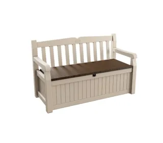 Keter Eden - Banco arcón Exterior, Baúl almacenaje, Capacidad 265L, Resina, Color Marrón y Beige, Ordenación jardín y terraza, 140 x 60 x 84 cm Dimensiones del producto 60f. x 140an. x 84al. centímetros Material Polipropileno Inyectado / Madera Material del marco Plástico Color Beige Estilo Country Rustic Tamaño 60x140x84 cm Peso Artículo 15,8 Kilogramos Peso Máximo Recomendado 250 Kilogramos