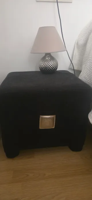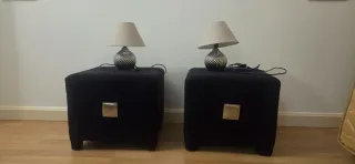 2 Mesitas de Noche Negras con Detalle Plateado.