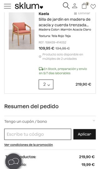 Pack 2 Sillas Jardín Sklum NUEVAS