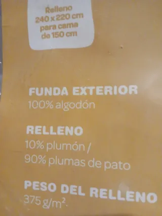 Nórdico de gran tamaño, perfecto para camas dobles. - Medidas: 240x220 cm. - Material exterior de algodón e interior plumón. Nada de poliester