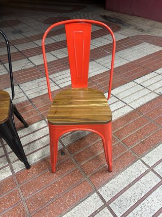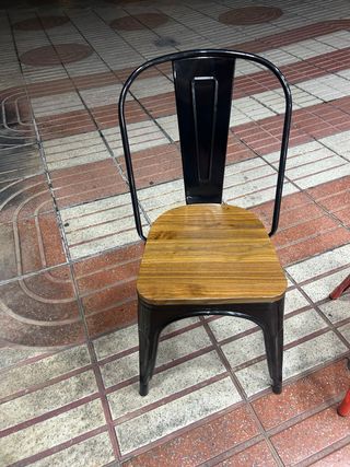 Sillas metálicas con asiento de madera