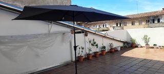 Se vende sombrilla de terraza practicamente nueva. El pie tambien se vende