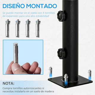 Soporte de Sombrilla para Suelo , con 2 Botones de Bloqueo y 4 Tornillos de Expansión Marca Outsunny Base de Sombrilla para Palo de Paraguas de 34/38/48mm. Medidas 12x12(base) y mástil 30 cm