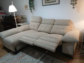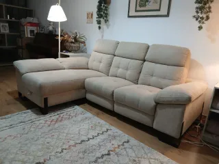 Sofá chaise longue de gran lujo, marca Torresol, modelo Adra, 240 cm x 172 cm, 2 motores electricos, casi nuevo. Uso de una sola persona. Tapicería de tela de alta calidad, fácil de limpiar. Comodidad excepcional. Quedan todavía 2 años de garantía en suspensión y mecanismos eléctricos (ver fotos) Desmontable. Precio nuevo hace 3 años: 2.065 Euros (ver foto) Se vende por mudanza a una casa más pequeña.