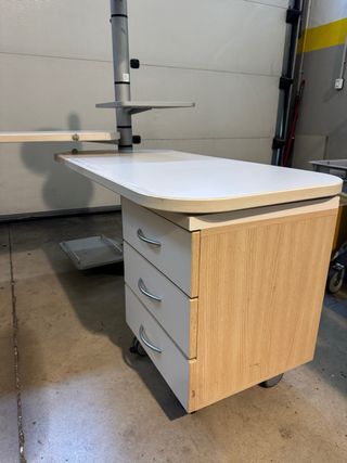Elegante mesa de escritorio con un diseño moderno y funcional. 176x152x170(altura) - Superficie de trabajo espaciosa. - Estructura metálica robusta. - Módulos de almacenamiento integrados. -Puede girar en múltiples ángulos.