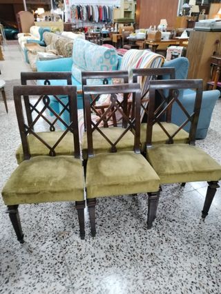 Conjunto de 5 sillas de madera antiguas, con un poco de restauración quedarán perfectas, las 5 por 30 euros. luis XVIII, XVII, isabelino, Palacio, lujo, pan de oro, centro, reloj, decoración, vintage, cornucupia, oferta, dorado, espejo,libro, elegante, ocasión, barroco , comedor, entrada, mueble, lámpara, cristal,bohemia,ángel, cielo, chollo, instrumento, violín, laúd, acordeón, trompeta , oportunidad, isabelino.