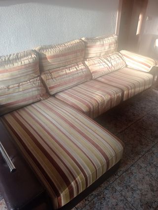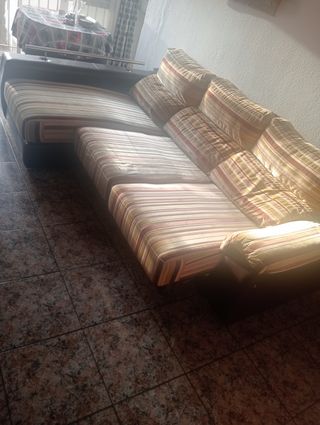 SOFA CAMA ARCON Sofá 2,80 x 1,70, tela antimanchas, espaldal superior reclinable en 3 posiciones, asientos regulables para hacer del sofá cama, tiene alcón de gran capacidad, se divide en 2 módulos que se enganchan y desenganchan para mejor transporte y poder mover en casa, se incluye los dos cojines aterciopelados originales. Tiene unos pequeños desperfectos en dos esquinas (véase foto) y un cojín un poco descosido lo cual con una funda o reparandolo queda de lujo, es cómodo y confortable, se puede ver sin compromiso, ideal para casa de campo o casas de alquiler ó segunda vivienda. Se vende por cambio de mobiliario. Costó nuevo. 1699'99€