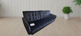 Sofá cama Studio, terciopelo negro: Elegancia y funcionalidad en un solo mueble. Descripción: * Diseño moderno: Líneas sencillas y elegantes que se adaptan a cualquier estilo de decoración. * Terciopelo de alta calidad: Tacto suave y aterciopelado que aporta un toque de lujo a tu hogar. * Versatilidad: Perfecto para el salón como sofá y para el dormitorio como cama ocasional. * Comodidad: Asiento y respaldo acolchados para un descanso óptimo. * Estructura resistente: Diseñado para durar, con materiales de alta calidad. Lo hay en gris
