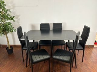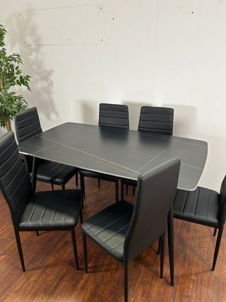 MESA DE COMEDOR MARMOL +6 SILLAS NUEVA COLOR NEGRO