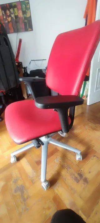 Silla de oficina en buen estado general. Está limpia, es cómoda y funciona perfectamente (altura regulable, ruedas y respaldo operativos). El respaldo queda ligeramente inclinado, como se aprecia en las fotos, pero no afecta su uso diario