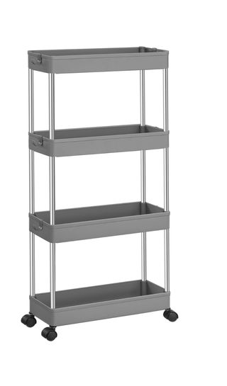 SONGMICS Carro de Almacenamiento de 4 Niveles, Carrito con Ruedas, Carro de Cocina, Ahorro de Espacio, para Baño, Oficina, 14,4 x 42 x 86 cm, Gris Paloma KSC008G01