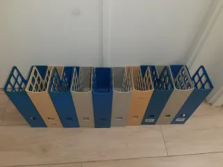 Conjunto de 10 organizadores de plástico para oficina. Medidas en cm. 32 alto x 7,6 ancho x 24,6 fondo. - Diseño moderno y funcional. - Colores variados para una mejor organización visual.