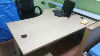 Escritorio con forma de L, ideal para optimizar el espacio en tu hogar u oficina. Su diseño se adapta a cualquier rincón. - Acabado en tonos beige y marrón. - en Buen estado, precio negociable
