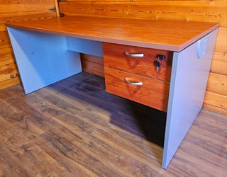 Mesa de maderq para estudio, despacho u oficina. Cuenta con dos cajones y cerradura con llave.