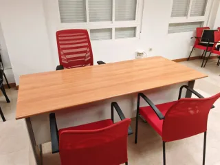 Se vende, por cierre de oficina en Badajoz, mobiliario en buen estado comprado hace un año en El Corte Inglés. Disponibles para comprar en conjunto o separado: - 10 mesas con superficie de cristal y estructura metálica. Medidas: 170 cm X 110 cm. 90 euros la unidad (compradas por 350 euros cada una). - 6 sillas de oficina giratorias modelo Génova. 45 euros la unidad (compradas por 99 euros cada una). Venta en persona en el edificio Eurodom, en Badajoz.