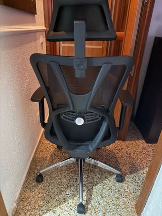 Silla de oficina con diseño ergonómico y reposacabezas. - Respaldo de malla transpirable. - Asiento acolchado. - Brazos ajustables. - Base con ruedas para fácil movilidad. Marca tivoca (Amazon nueva 140€)