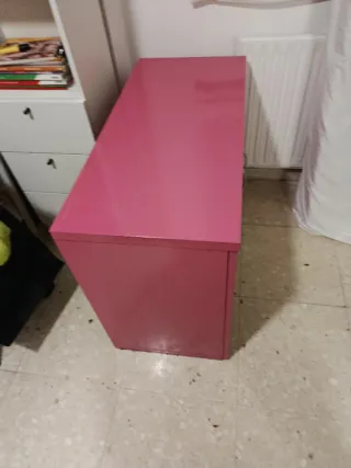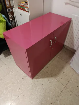 Mueble de oficina de diseño moderno y color rosa. - Dos puertas con tiradores. - está pintado de rosa. Tiene una balda Sin llave Medidas alto 67, ancho 42.5, largo 92.5 Se oyen ofertas