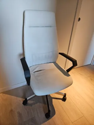 Silla de oficina Ikea. Impecable, 1 escaso año de uso. - Asiento y respaldo en plástico blanco. - Acolchado en tejido gris oscuro. - Base giratoria con ruedas.