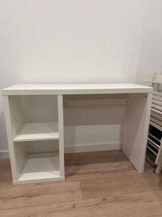 Escritorio Kallax de Ikea en color blanco. Cuenta con compartimentos de almacenamiento. - Diseño moderno y funcional. - Estructura de madera resistente.
