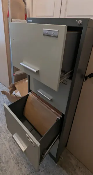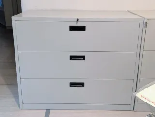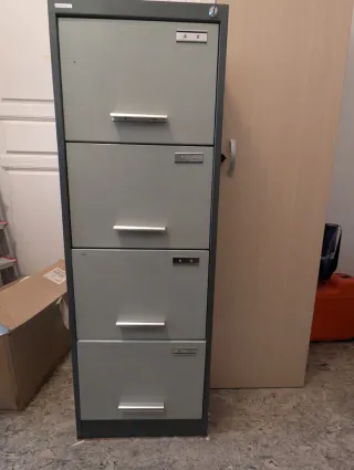Nuevo! Chollo! En su embalaje Gabinete de oficina con tres cajones. Sus dimensiones son 102,5 cm de alto, 62 cm de profundidad y 46 cm de ancho. Comprado por 160€ pero no me sirve, es demasiado grande - Tres cajones con tiradores negros. - Cerradura de seguridad en el cajón superior. No se envía, es enorme y pesa