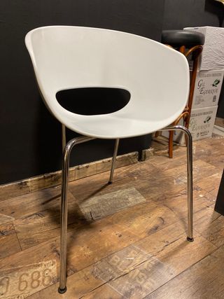 Silla de oficina con un diseño moderno y elegante. - Estructura metálica cromada. - Asiento y respaldo en tejido blanco.