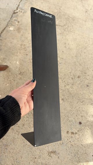 Pizarra de sobremesa con un diseño moderno y elegante. Perfecta para notas o mensajes. - Soporte integrado para estabilidad. - Superficie lisa para escribir. - Medidas Alto 40 cm Ancho 9 cm Soporte base 10 cm