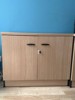 Se venden tres armarios de oficina, ideales para organizar tu espacio de trabajo. - Medidas: 80 cm de ancho, 30 cm de profundidad y 205 cm de alto. - Con dos puertas en la parte inferior y tres baldas en la suprerior. - Precio por unidad. - Los tres por 240€.