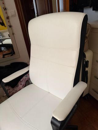 Silla de oficina con un diseño moderno y funcional. Es cómoda y se adapta a cualquier espacio de trabajo. - Asiento y respaldo acolchados. - Brazos ergonómicos. - Base giratoria con ruedas. - Color blanco - Muy cómoda