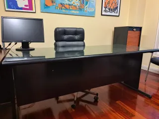 Elegante escritorio con superficie de cristal añadida para cuidado de la madera - Diseño moderno y funcional. - Combinación de materiales de calidad. No envío Recogida en Vigo zona centro Más información Laura 629280340 Medidas Largo 180 cm Alto 74 cm Ancho 80 cm Escritorio Vigo Escritorio Pontevedra Escritorio Galicia