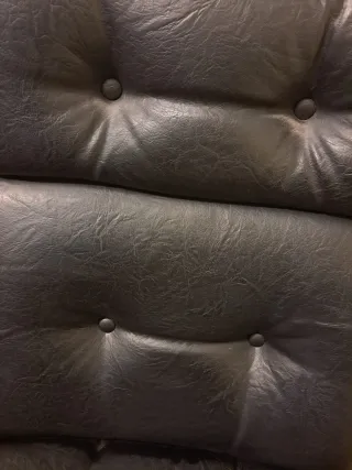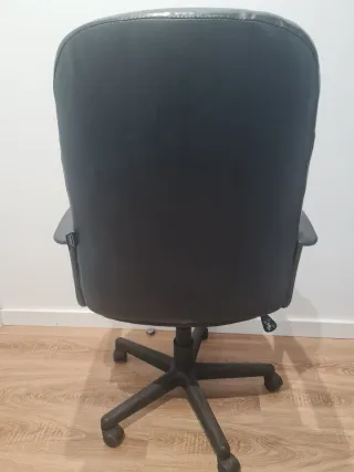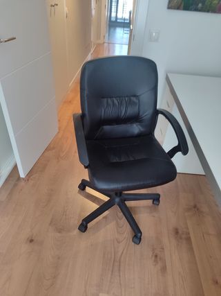 Silla de escritorio con un diseño clásico y funcional. No envío Recogida en Vigo zona centro Más información Laura 629280340 - Tapicería de piel sintética. - Base giratoria con ruedas. - Brazos acolchados.