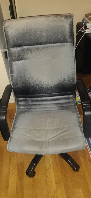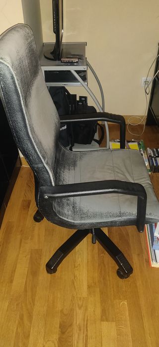 Silla de escritorio con un diseño moderno y funcional. - Respaldo y asiento acolchados. - Base con ruedas para fácil movilidad. - Brazos ergonómicos. 20 €