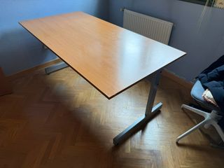 Bonito escritorio espacioso ideal para despacho, oficina o teletrabajo. Incluye posibilidad de poner un cajón debajo. Dimensiones: - Largo: 160 cm - Ancho: 80 cm - Alto: 72,5 cm Características: - Armazón/estructura resistente y estable - Tablero de madera de tamaño grande (160x80) - Incluye cajón extraíble para almacenamiento en la parte inferior, pero no tenemos los tornillos necesarios. Estado del producto: - Estructura sólida y funcional - Tablero con marcas de uso normales (ver fotos) - Totalmente operativo