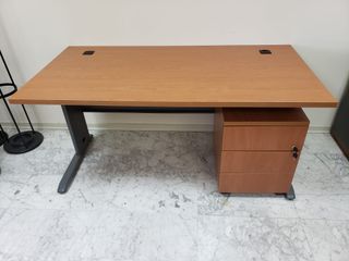 Conjunto de escritorio y silla de oficina. - Escritorio con cajonera. Accesorio estraible para el teclado ( se puede quitar) En la parte de atrás tiene un agujero que hicimos para pasar los cables (última foto) Medidas : - Fondo :60 - Largo : 110 - Alto : 75 - Silla de oficina con ruedas.