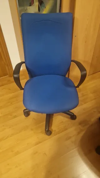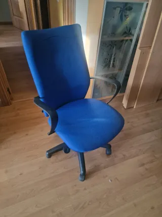 Silla de oficina ergonómica en color azul, muy cómoda y en excelente estado. Asiento y respaldo acolchados, brazos redondos confortables y ruedas que se deslizan perfectamente. Altura regulable y base estable. ✔ Tela limpia, sin manchas ni desgaste ✔ Ruedas suaves y mecanismo funcionando bien ✔ Higienizada y lista para usar ✔ Ideal para teletrabajo, estudio o despacho Entrega en mano – Zona Corredor del Henares. Precio: 40 € (no negociable).