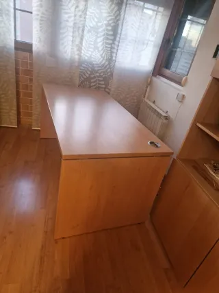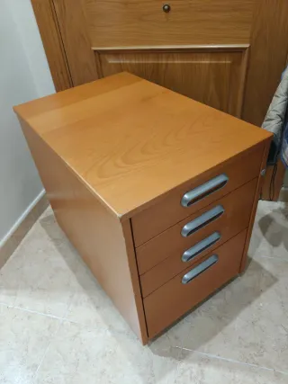 Mueble auxiliar para oficina o despacho con cuatro cajones. - Diseño funcional. - Acabado en madera clara. - Tiradores metálicos. El producto se vende tal cual para recoger en el barrio del Puerto de Coslada.