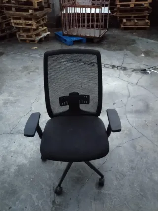 Medidas Asiento 48cm(largo)x47cm(fondo) Respaldo 48cm(largo)×56cm (alto) Silla operativa despacho escritorio con reposabrazos confortable, adaptable con asiento tapizado negro y respaldo reclinable en malla. Regulable en altura, giratoria con base de 5 brazos y ruedas con doble banda de rodamiento. Disponemos de varias unidades. Ideal para escritorios, mesas despachos, oficinas o coworking. Somos especialistas en muebles mobiliario oficina ocasión y segunda mano. Posibilidad entrega domicilio. Referencia AD48 -- Cadira despatx confortable, adaptable amb seient entapissat negre i respatller en malla.